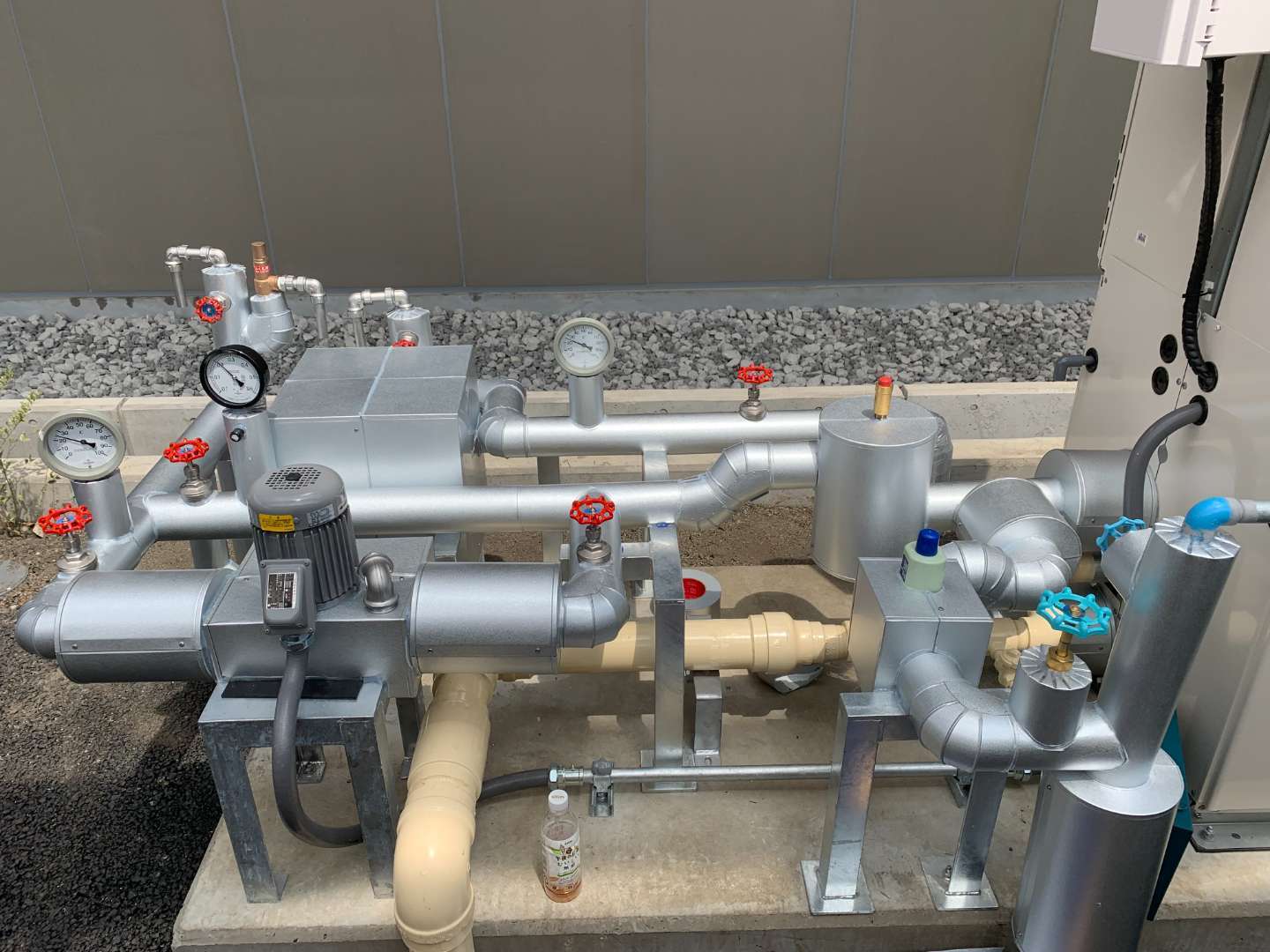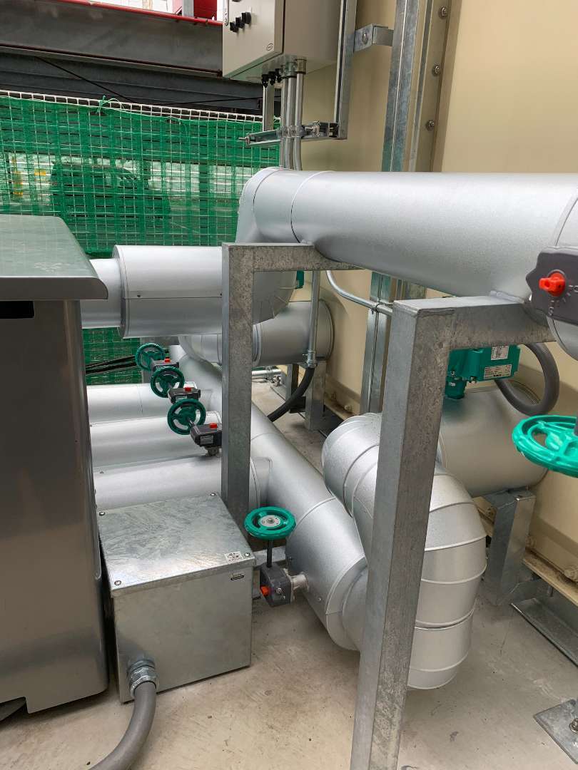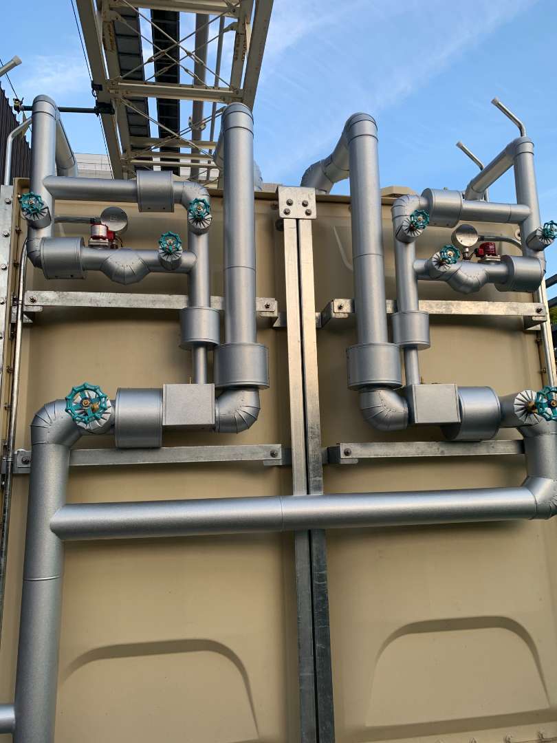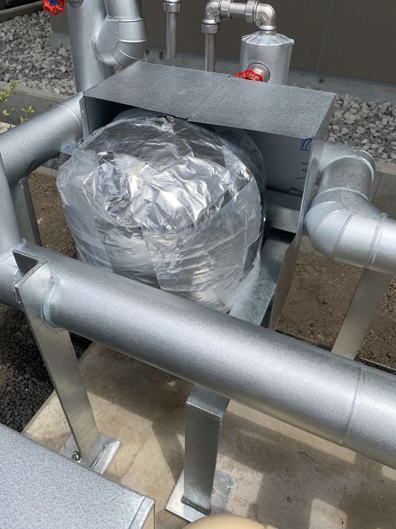 常時-15℃のブライン配管凍らせないために、エアロフレックスで保冷工事施しました。